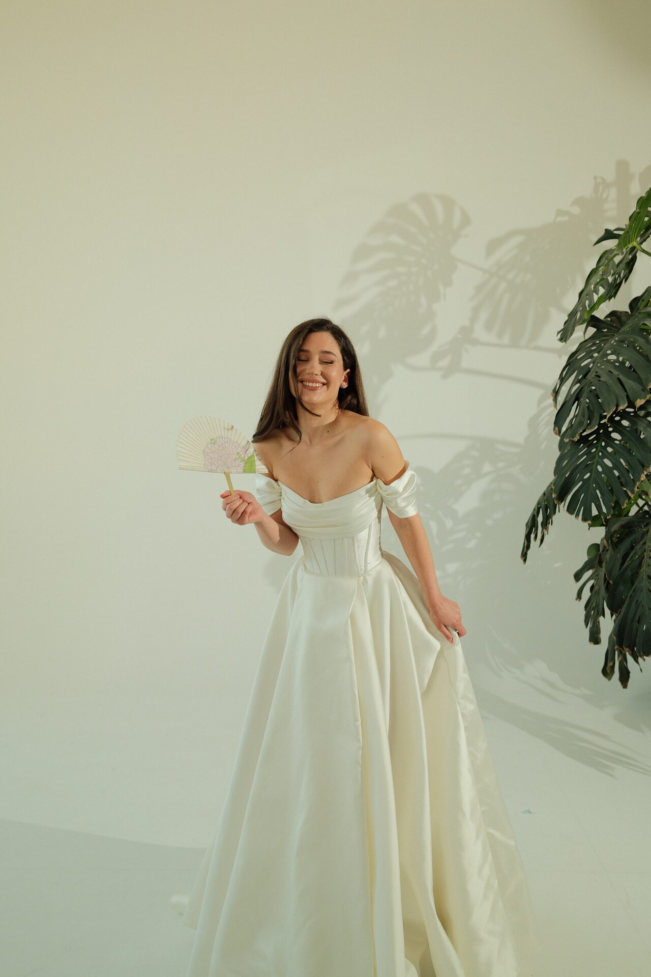 მისი A-სილუეტი ინარჩუნებს ვიზუალურ ბალანსს და უზრუნველყოფს კომფორტს – ზედატანი ტანზე მომდგარია, ქვედაბოლო კი რბილად ეშვება და ბუნებრივად მოგყვებათ მოძრაობისას. თუ მსგავს სილუეტებს ადარებთ ერთმანეთს, დაათვალიერეთ ჩვენი საქორწილო კაბების კოლექცია სხვა ვარიანტებისთვის.