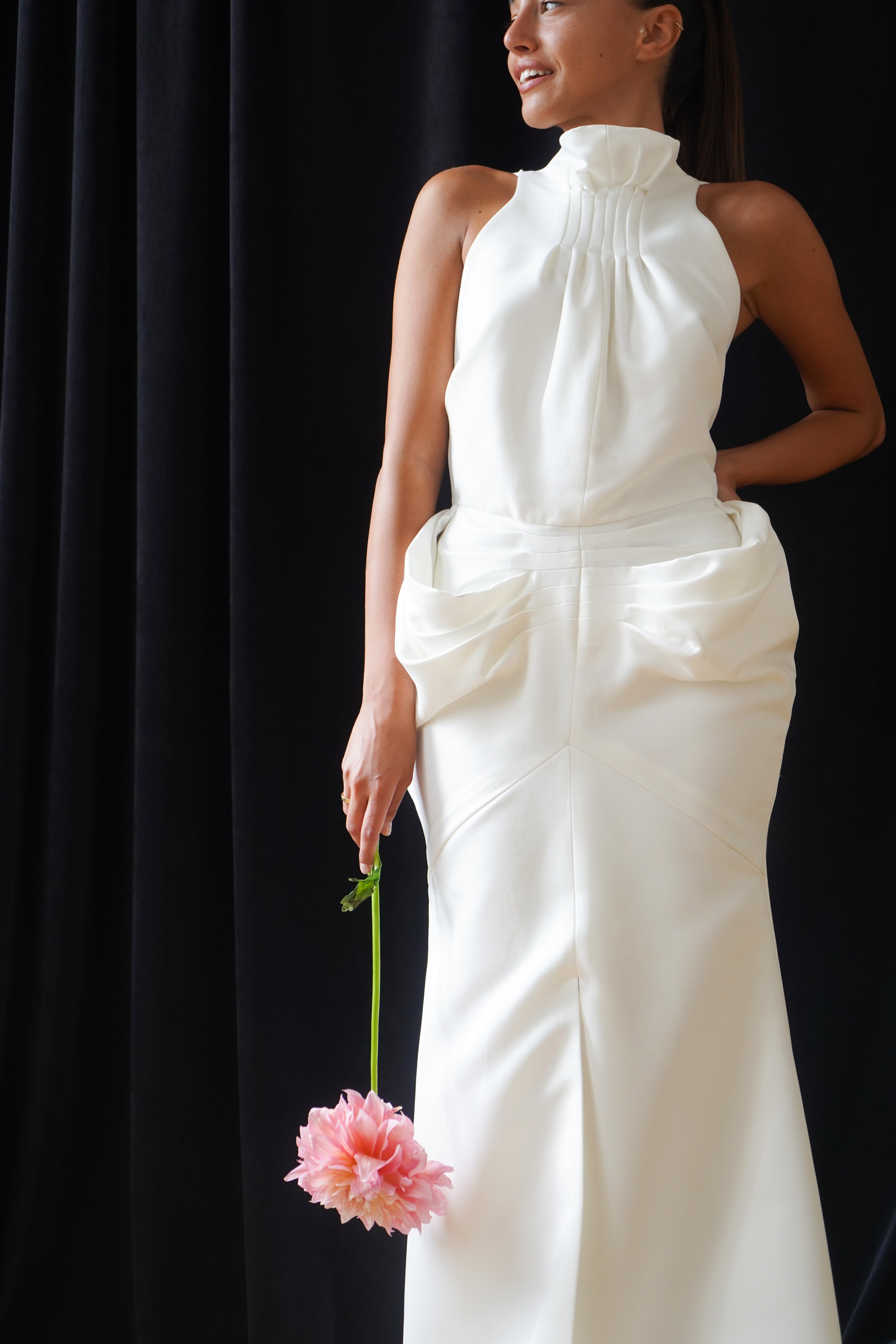 The Amazonian Bride: მინიმალისტური ქართული საპატარძლო კაბა დახურული დეკოლტეთი