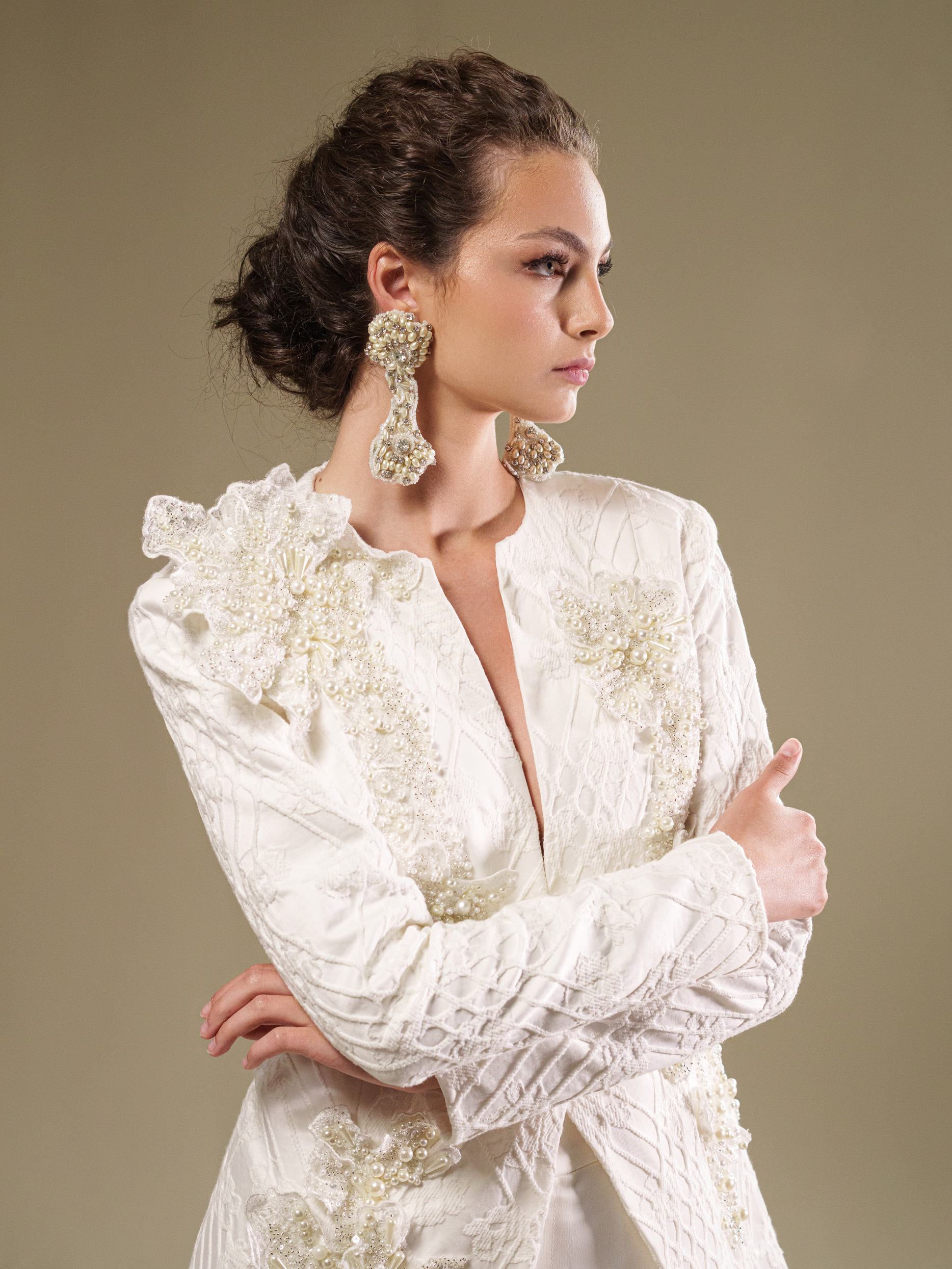 ორეული “Royal Disruption” არის გაბედული არჩევანი თანამედროვე პატარძლისთვის, რომელთაც არ ერიდებათ ტრადიციული საზღვრების გადალახვა. ეს უნიკალური დიზაინი აერთიანებს კლასიკურ ელეგანტურობას თანამედროვე სტილთან, რაც გამოიხატება ჟაკარდის ქსოვილის, 3D ყვავილების და მარგალიტების დეტალების ჰარმონიულ შერწყმაში. ტაფტასა და ატლასის კომბინაცია კი ქმნის მდიდრულ ტექსტურას, რომელიც თქვენს ქორწილის დღეს განსაკუთრებულს ქმნის. “Royal Disruption” ორეული გაძლევთ შესაძლებლობას შექმნათ ელეგანტური და თანამედროვე იერსახე, რომელიც არავის დატოვებს გულგრილს. ეს არის არჩევანი თამამი და თავდაჯერებული პატარძლებისთვის, რომლებიც ქორწილის დღეს, საკუთარი უნიკალურობის გამოხატვას ესწრაფვიან.