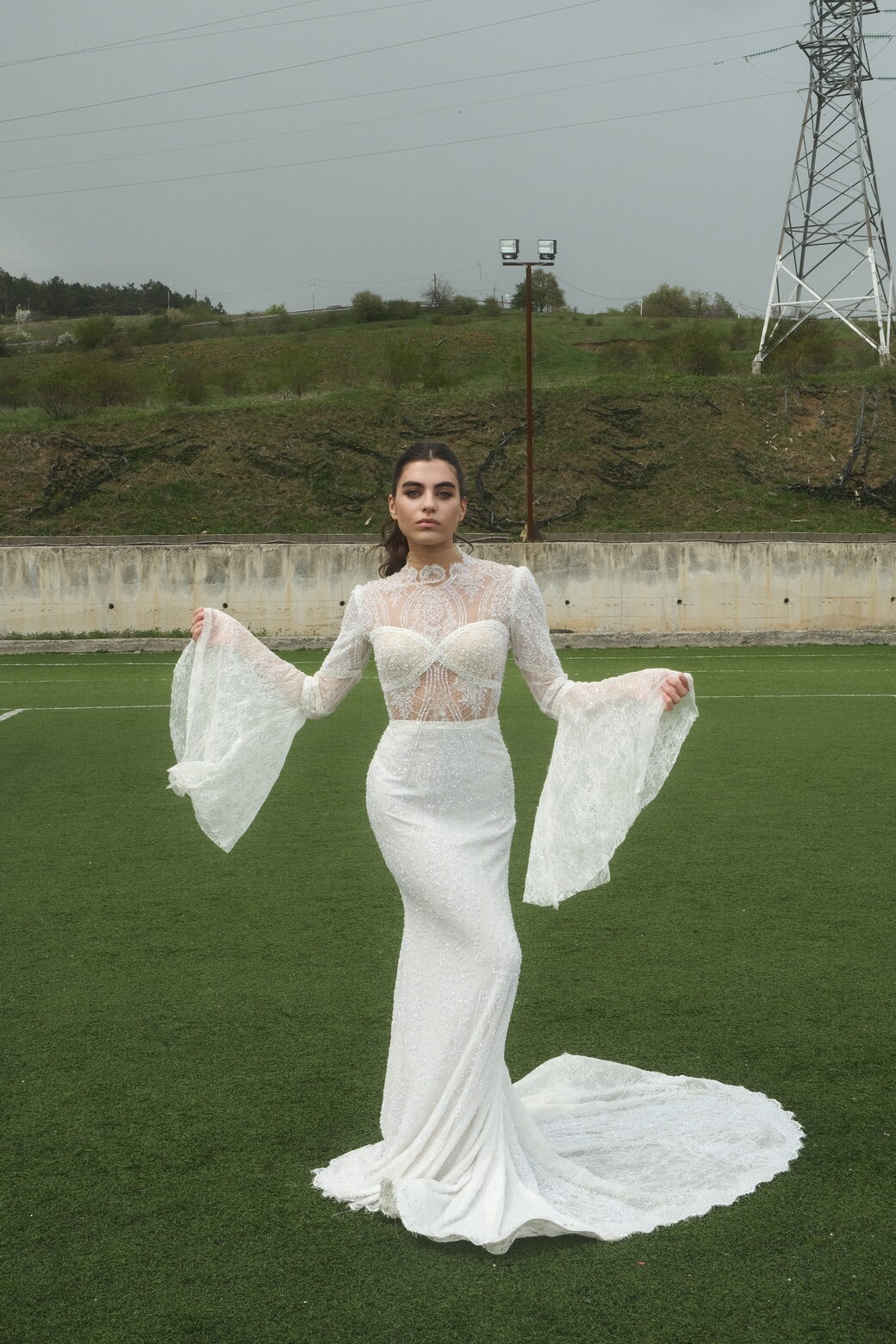 ეს უნიკალური საქორწილო კაბა, “Boho Charm”, შექმნილია თავისუფლებისმოყვარე და უნიკალური სტილის მქონე პატარძლებისთვის. მისი ქალთევზას სილუეტი და მაღალი დეკოლტე ხაზს უსვამს თქვენს ფიგურას, გამჭვირვალე გრძელი მკლავები და ღია ზურგი კი მატებს თქვენს იერს განსაკუთრებულ ხიბლსა და სინაზეს.
