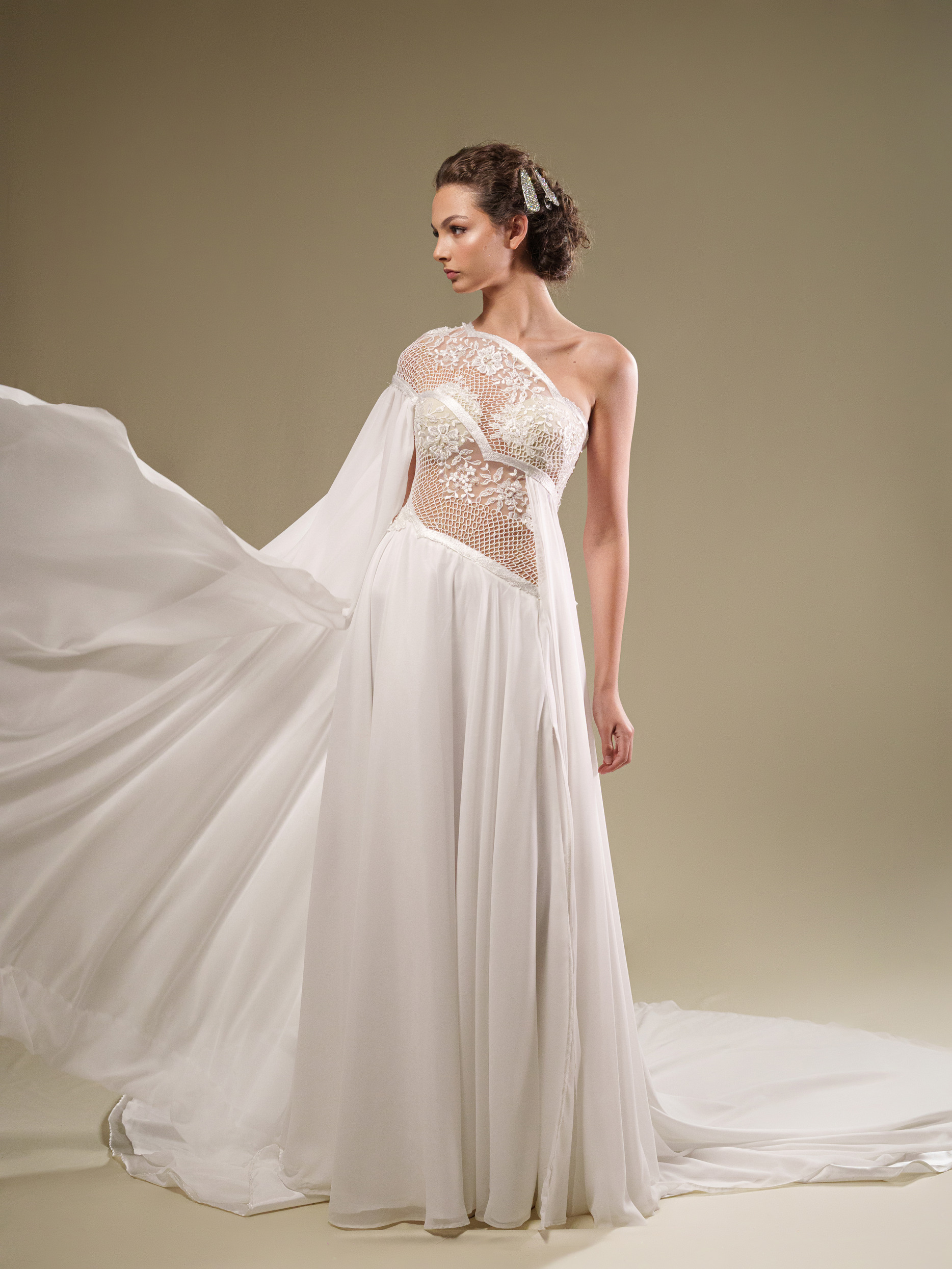 Siren’s Song: ვინტაჟური მაქმანისა და შიფონის საქორწილო კაბა